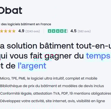 Les retours clients sont globalement très favorables. Avec une moyenne de 4,5/5 sur Trustpilot et 4,9/5 sur Google, Obat fait partie des solutions de gestion les mieux notées dans le secteur du bâtiment.